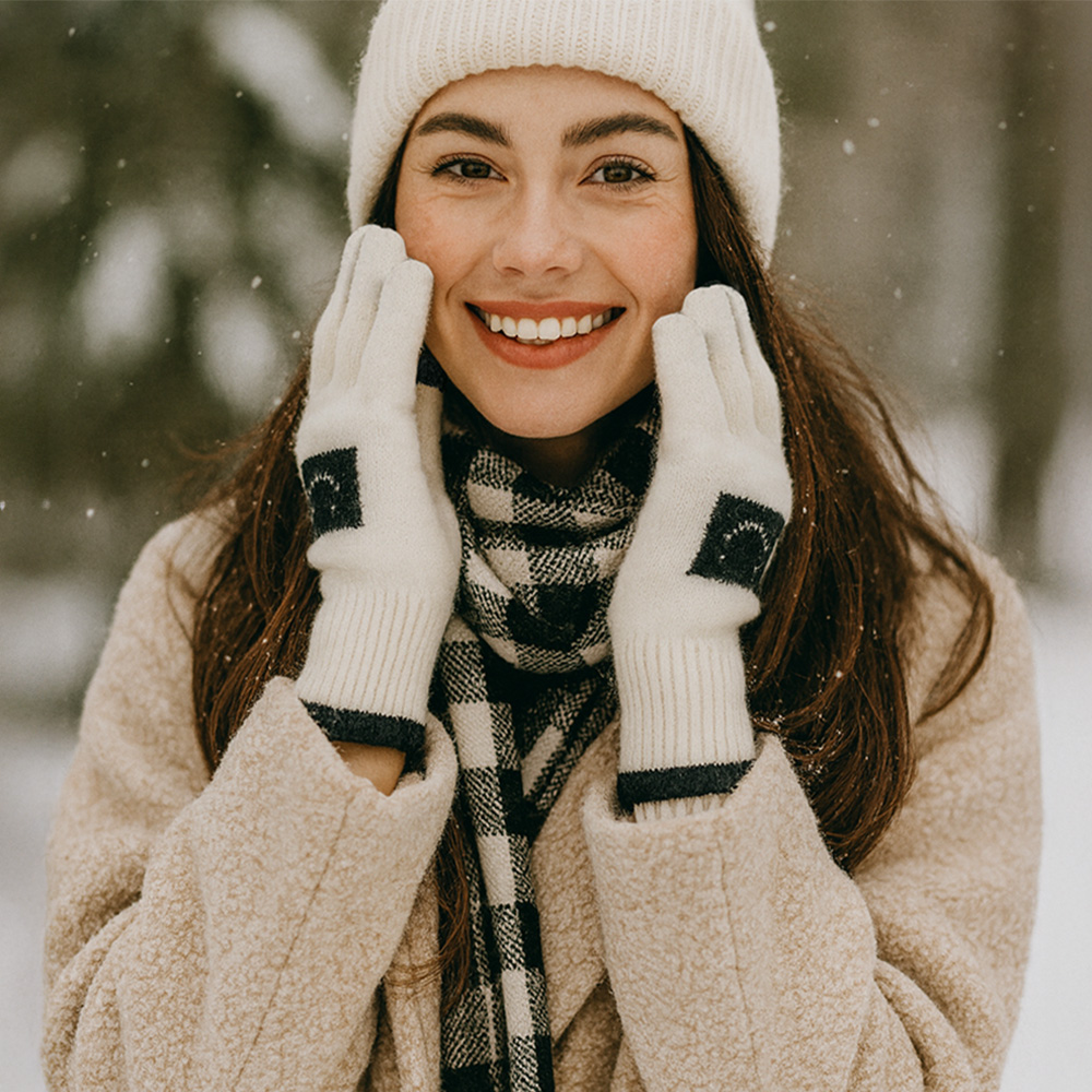 Details • Size : One Size • Material : 100% Polyester • Smart Touch • Cozy knit gloves with smart touch technology, featuring a playful face motif and contrast trim design. Perfect for keeping hands warm while allowing easy use of smartphones and tablets. A stylish and practical cold-weather accessory that combines fun detailing with everyday functionality.