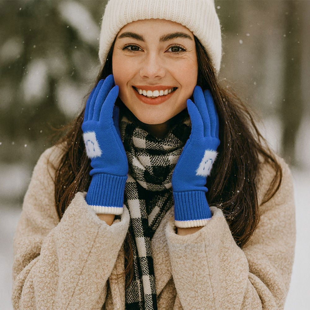 Details • Size : One Size • Material : 100% Polyester • Smart Touch • Cozy knit gloves with smart touch technology, featuring a playful face motif and contrast trim design. Perfect for keeping hands warm while allowing easy use of smartphones and tablets. A stylish and practical cold-weather accessory that combines fun detailing with everyday functionality.