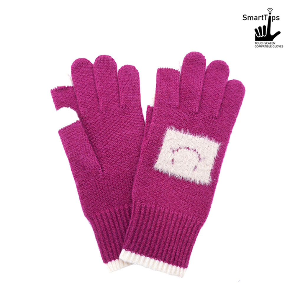 Details • Size : One Size • Material : 100% Polyester • Smart Touch • Cozy knit gloves with smart touch technology, featuring a playful face motif and contrast trim design. Perfect for keeping hands warm while allowing easy use of smartphones and tablets. A stylish and practical cold-weather accessory that combines fun detailing with everyday functionality.