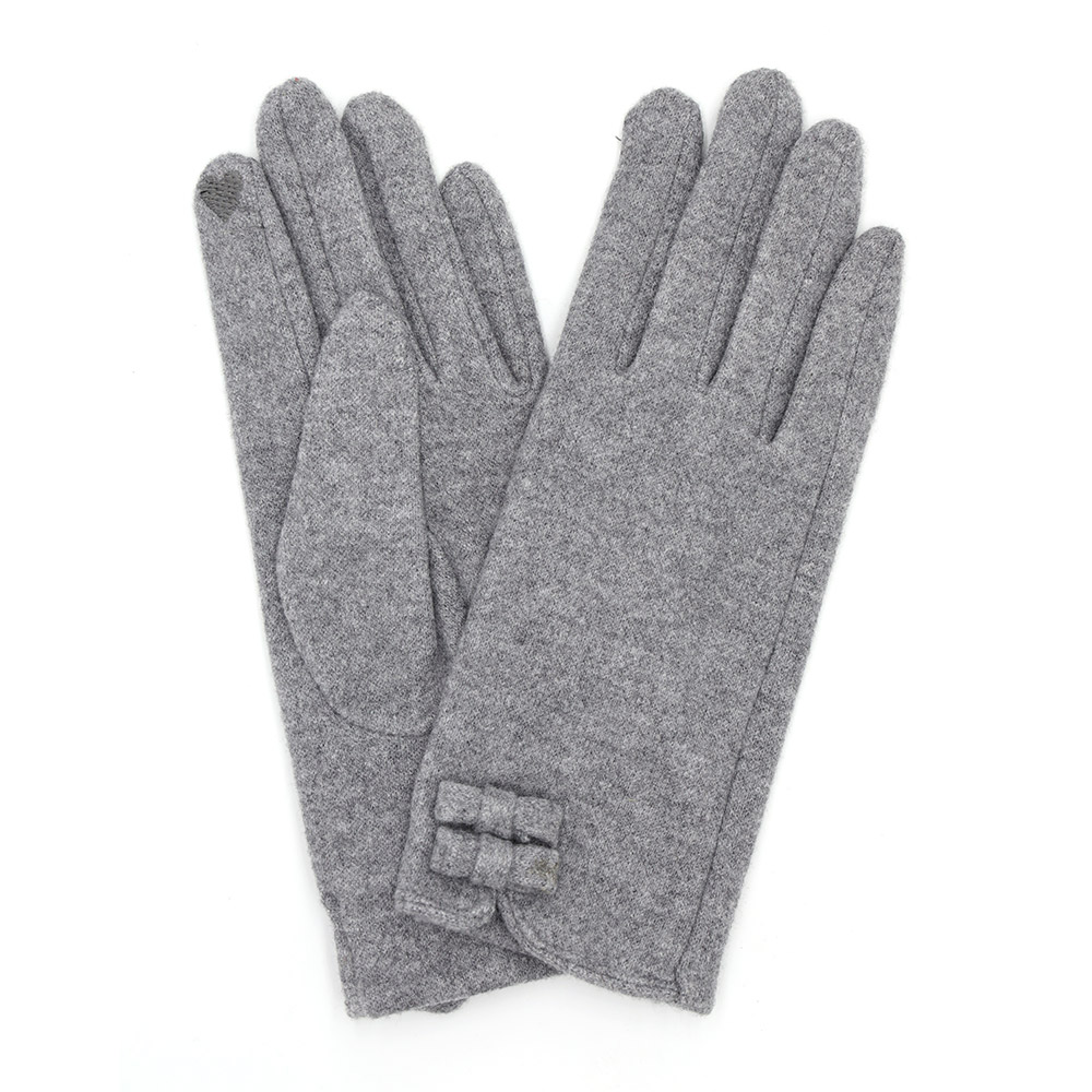 Details • Size : One Size • Material : 100% Polyester • Smart Touch • Elegant winter gloves with a touchscreen-compatible fingertip and decorative double-bow accent. Designed for both style and functionality, perfect for cold-weather outings and daily wear.