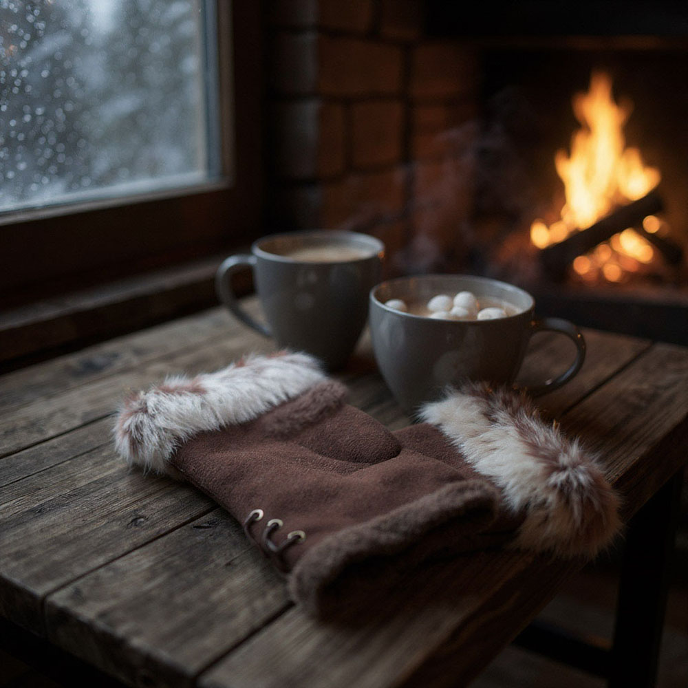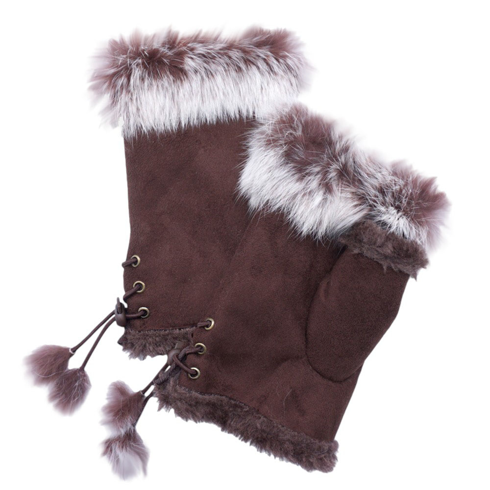 • Elevate your winter style with these real fur trim gloves featuring a cozy fingerless mitten design and lace-up side ties with pom pom accents. Luxurious yet practical, they keep hands warm while allowing flexibility, making them a chic and functional accessory for cold-weather outfits.