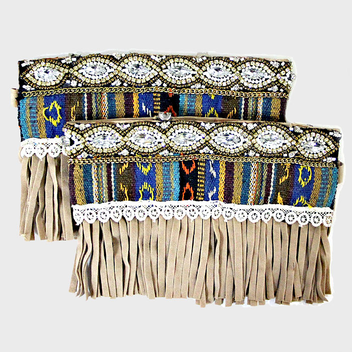 1-Pair Boho Beaded Aztec Stripe Suede Fringe Boot Toppers