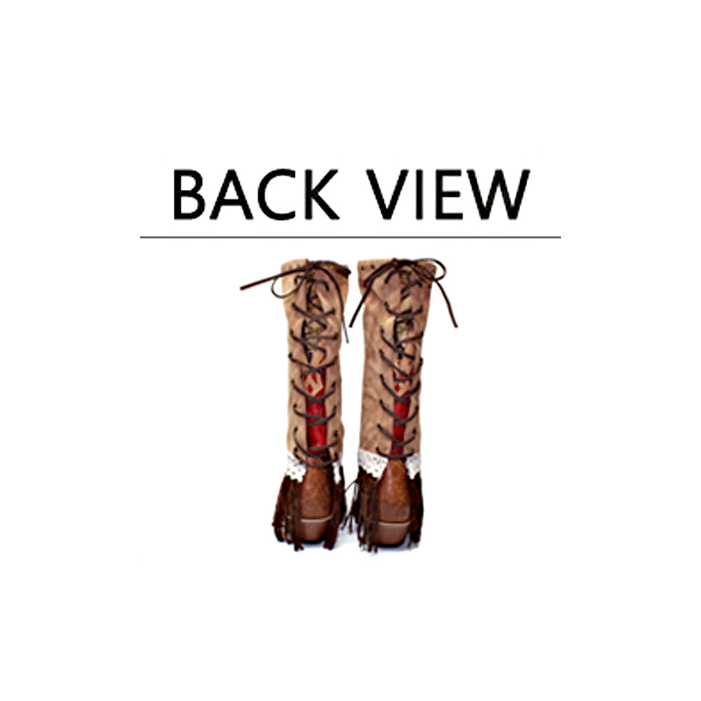 Details • Size : 6" X 16" • Adjustable • Material : Polyester, Faux Suede • Make a bold statement with these sugar skull boot covers featuring fringe, lace trim, and embroidered details. Ideal for festivals, themed parties, and adding flair to your western or costume look.