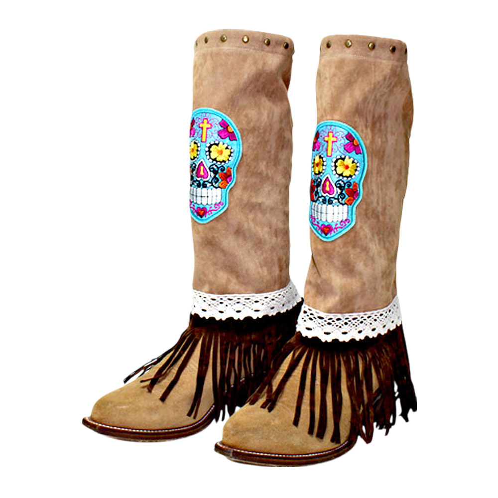 1-Pair Day of the Dead Skull Suede Fringe Boot Toppers