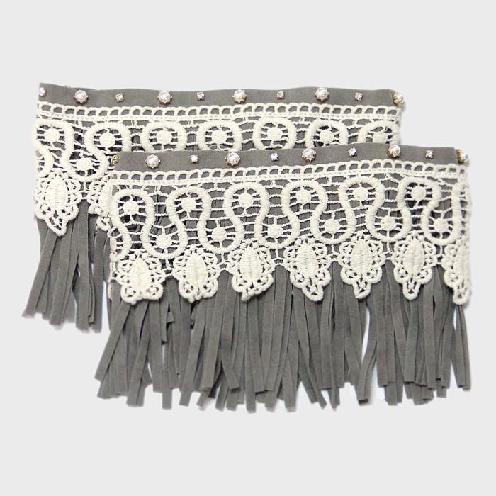 1-Pair Lace Accented Suede Fringe Boot Toppers
