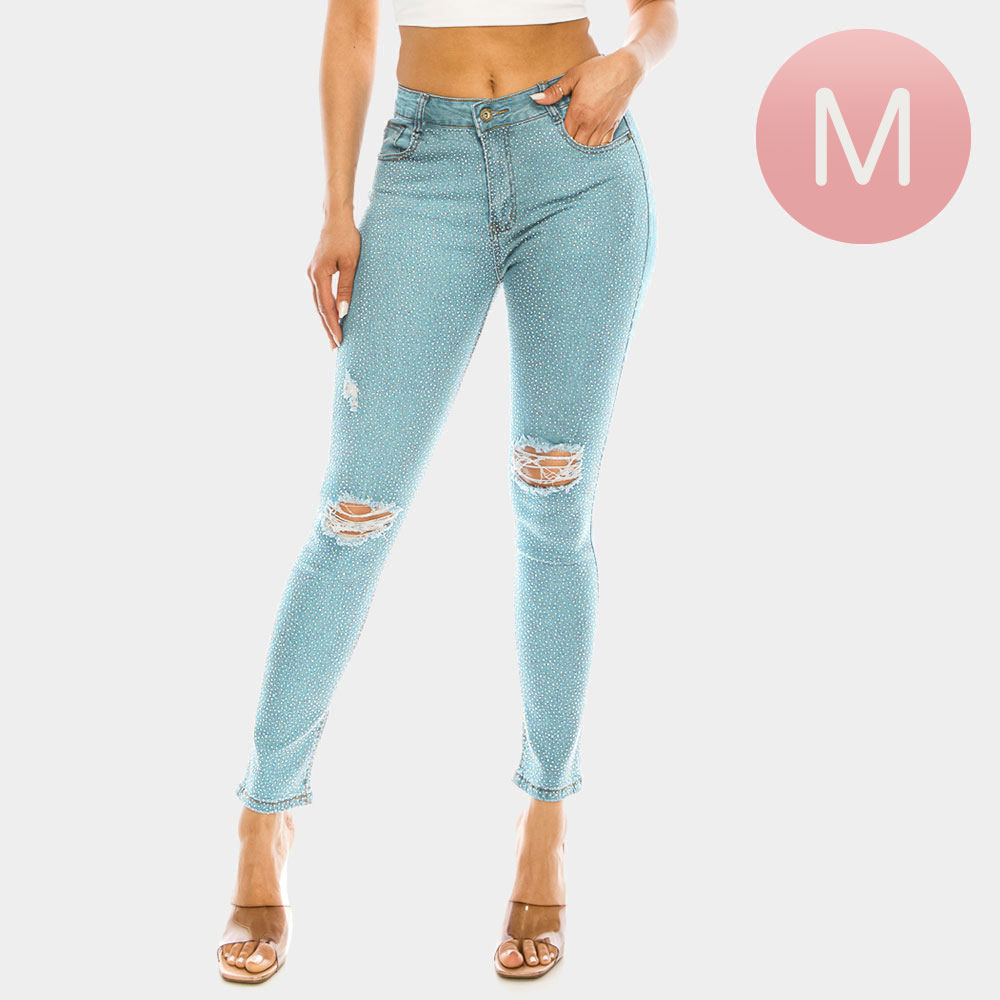 Bling Studded Destroyed Skinny Jeans