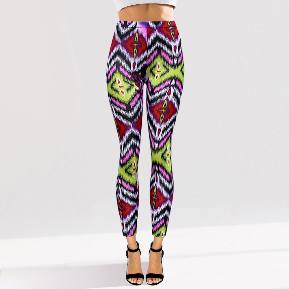 • Stretchy high-waisted leggings with an eye-catching tribal chevron pattern. Offers a bold, stylish fit perfect for casual outings, fitness sessions, or statement streetwear looks. Unique design adds vibrant flair.