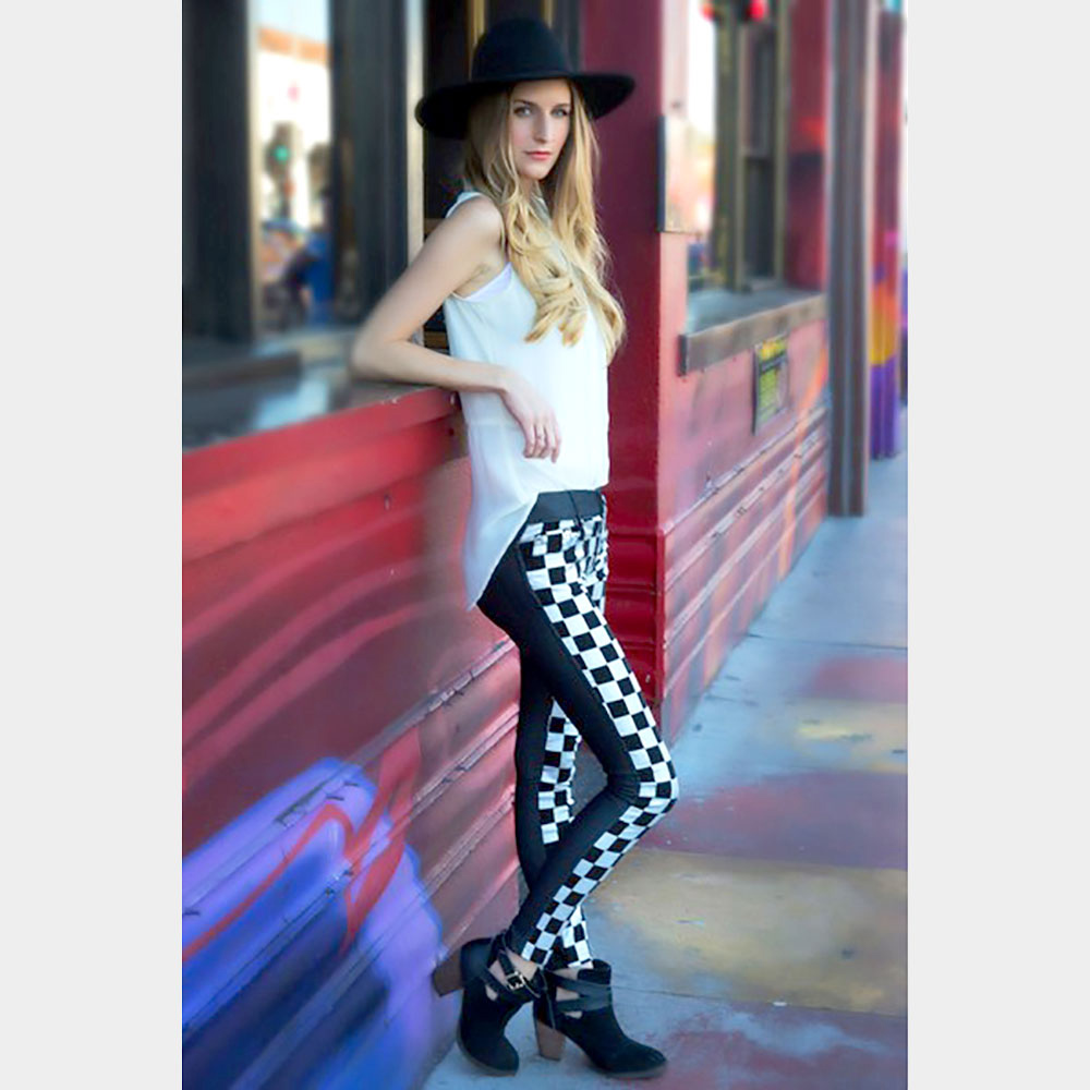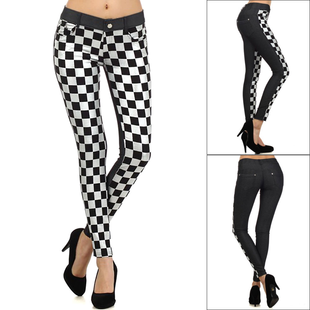 Frontal Metallic Silver Checkerboard Print Jeggings