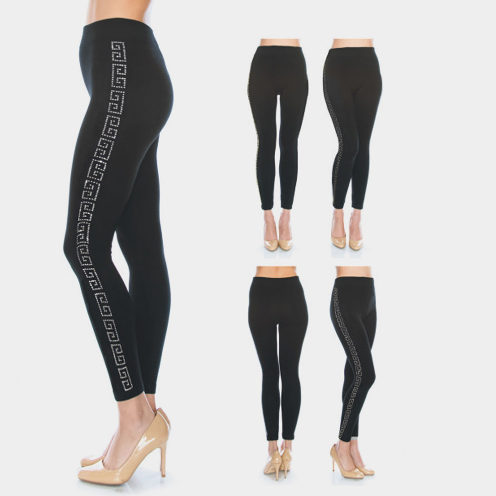 Greek Pattern Rhinestone Pave Lines Detail Leggings
