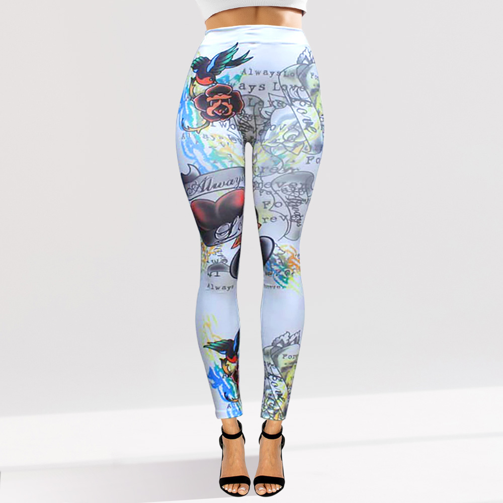 Tattoo Inspired Graphic Printed High Waisted Leggings