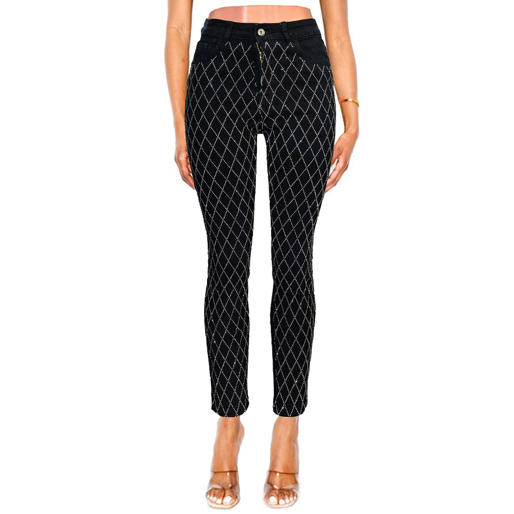 Diamond Pattern Bling Studded High Waist Skinny Jeans