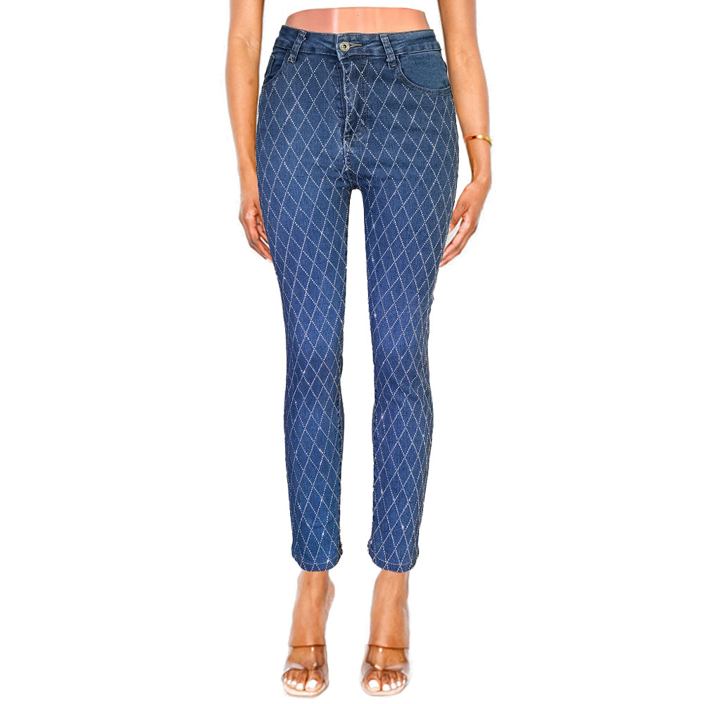 Diamond Pattern Bling Studded High Waist Skinny Jeans