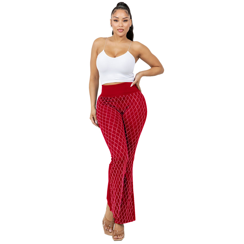 Plus Size High Waisted Bling Studded Diamond Pattern Flare Leggings