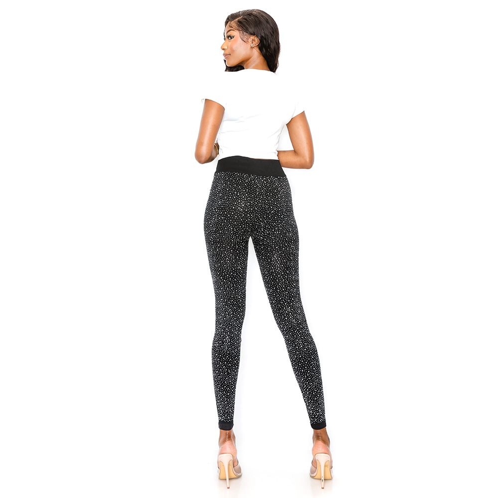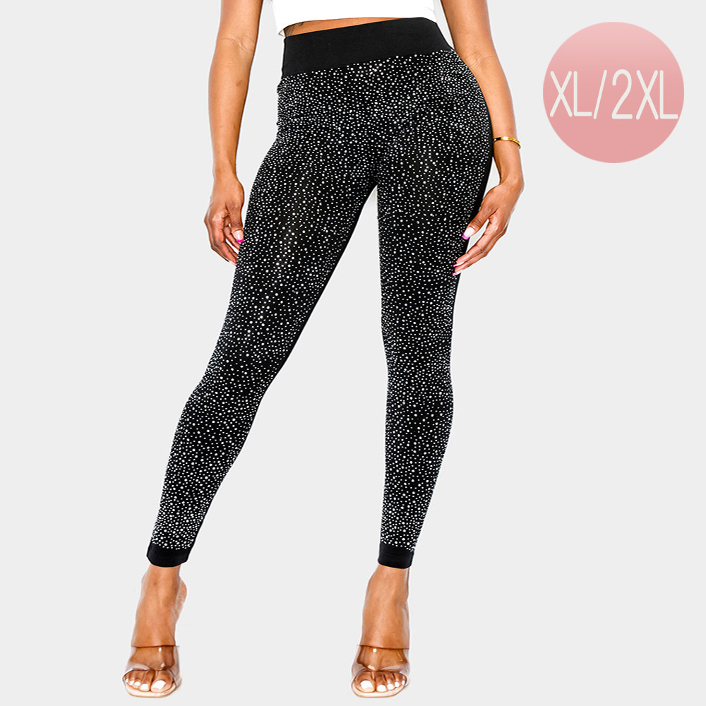 • High-waisted black leggings with allover glitter detail in a comfy XL/2XL fit. Stylish and stretchy for effortless glam on the go.