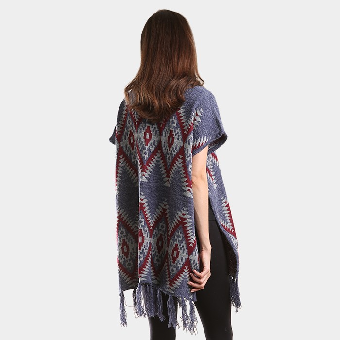 Aztec chevron pattern tassel edge shawl sweater