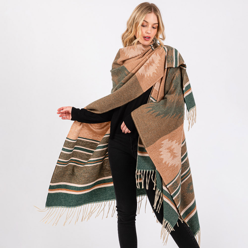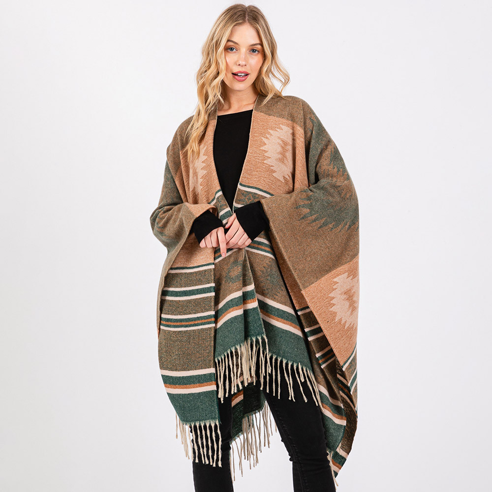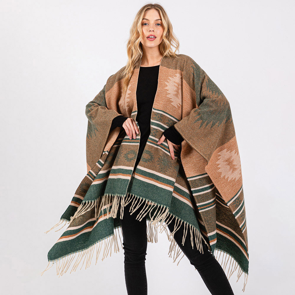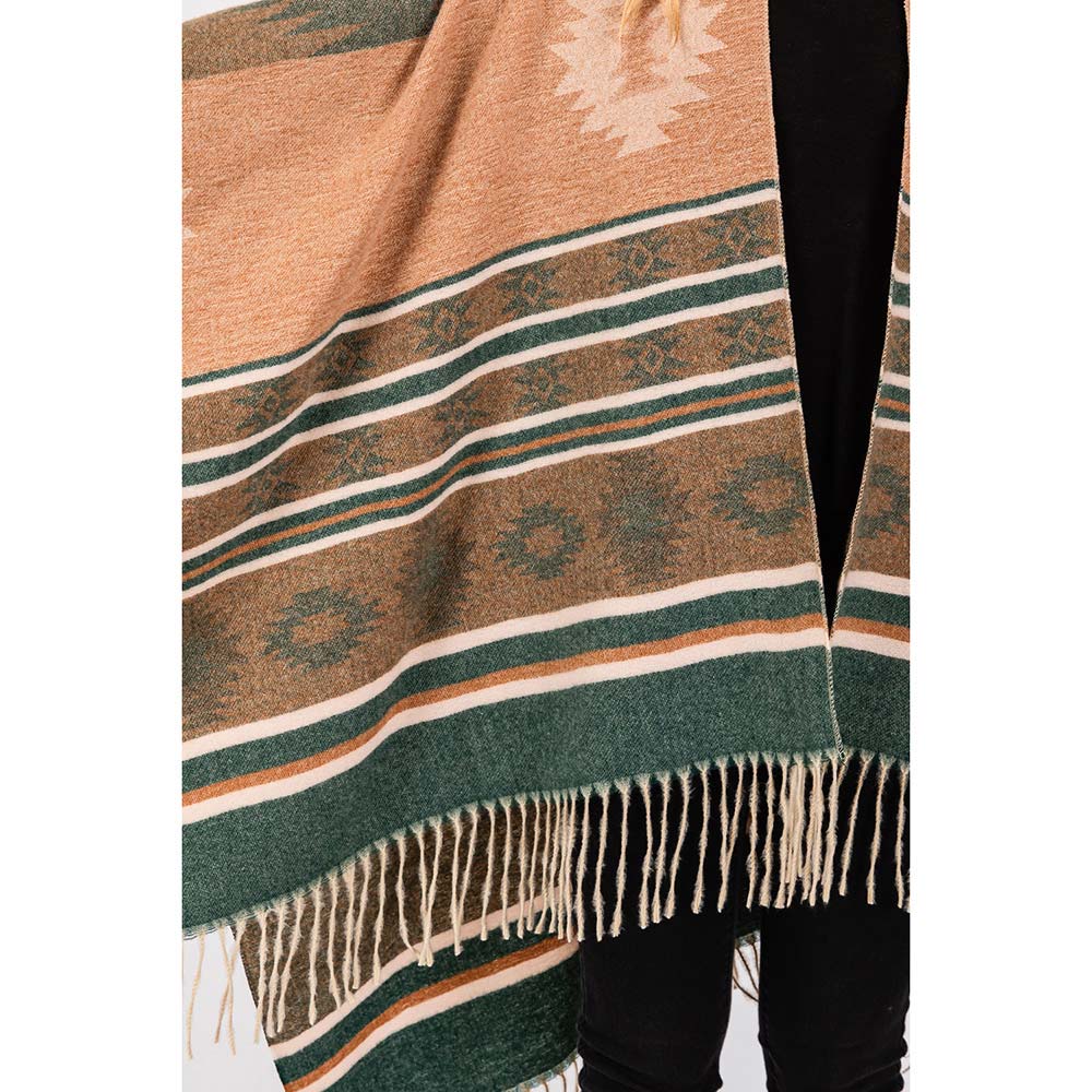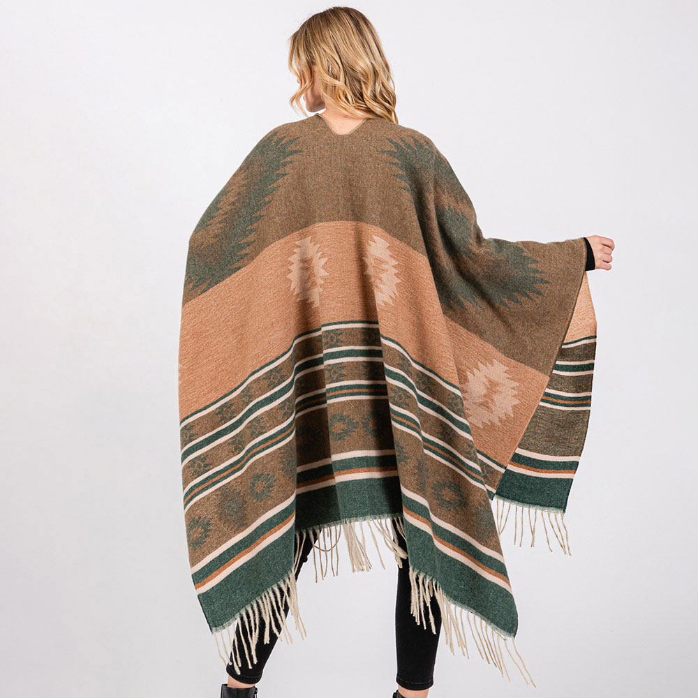 Aztec Pattern Fringe Ruana Poncho