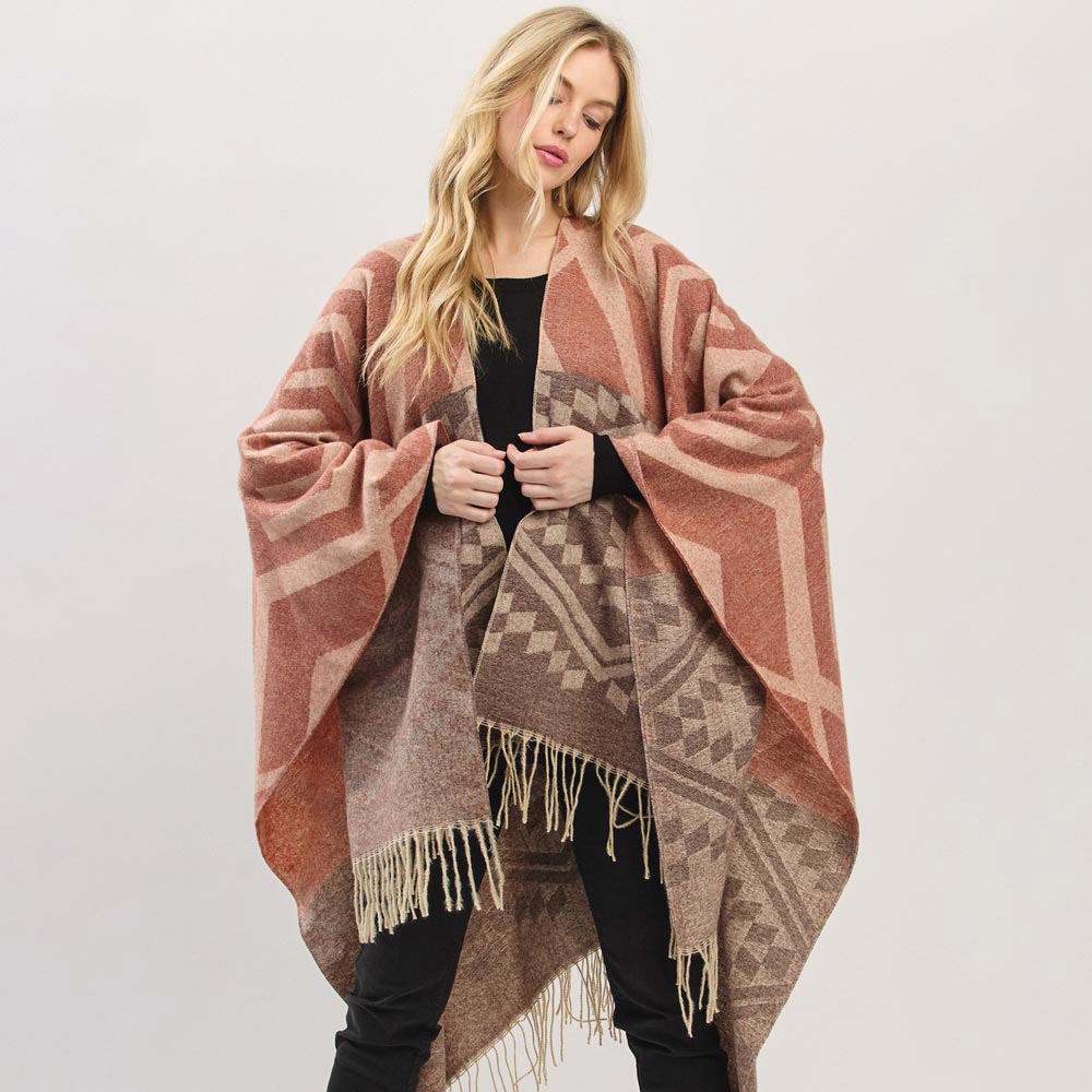 Aztec Pattern Fringe Ruana Poncho Aztec Pattern Fringe Ruana Poncho Aztec Pattern Fringe Ruana Poncho Aztec Pattern Fringe Ruana Poncho