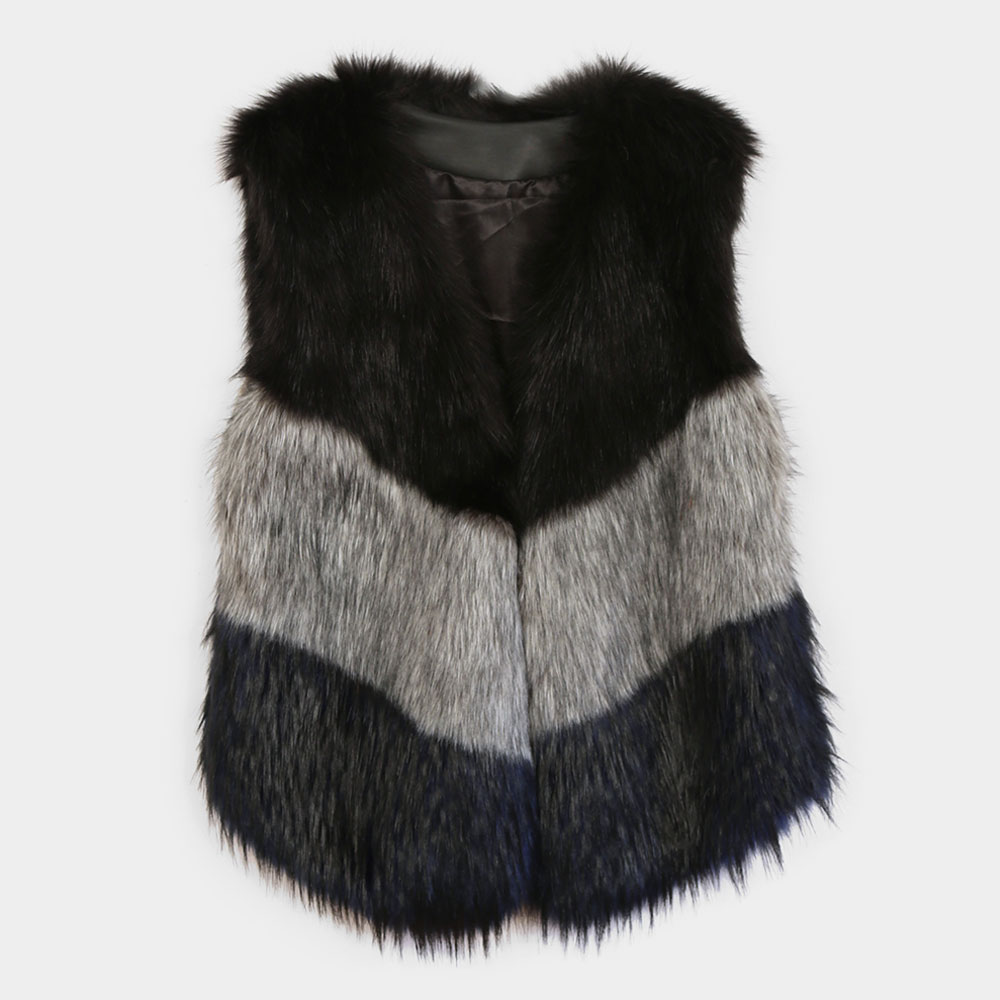 Details • Size : 21" X 19.5" • Material : 70% Polyester, 30% Acrylic • Elevate your cold-weather style with this sleeveless faux fur vest featuring a bold chevron pattern and soft textured finish. Perfect for layering over dresses or casual outfits, this versatile vest adds a modern edge while keeping you stylish and cozy.