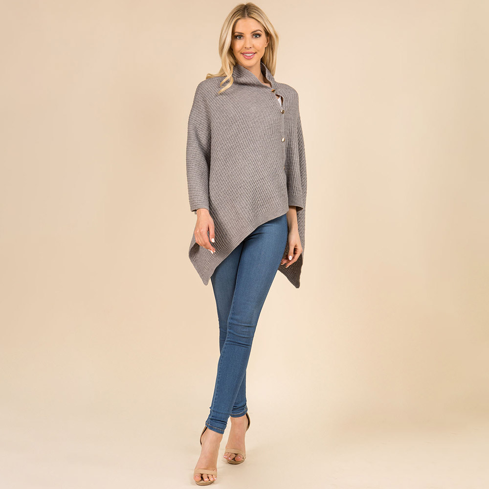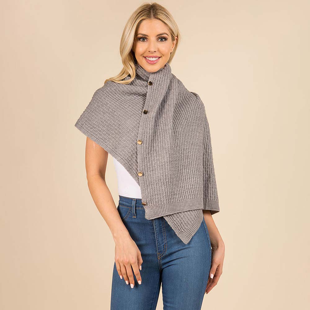 Convertible Button Up Waffle Knit Shawl Cape Poncho