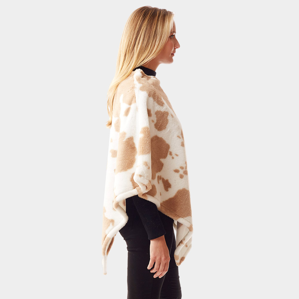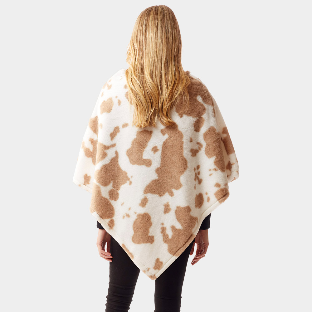 Open Front Animal Print Shawl Wrap Poncho with Loop