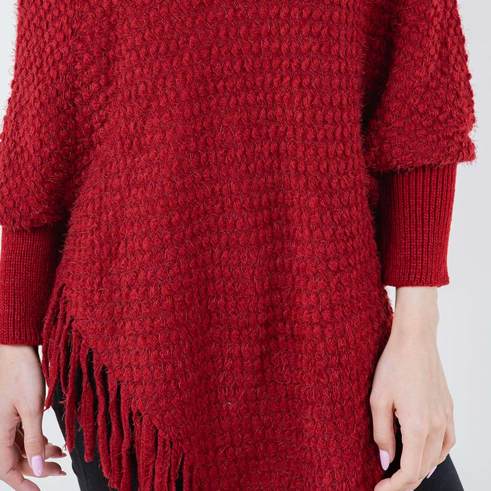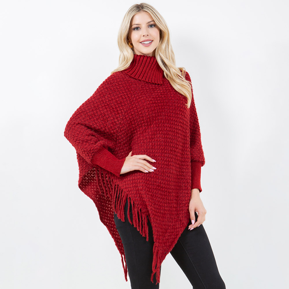 Cowl Neck Fringe Hem Knit Poncho Cowl Neck Fringe Hem Knit Poncho Cowl Neck Fringe Hem Knit Poncho