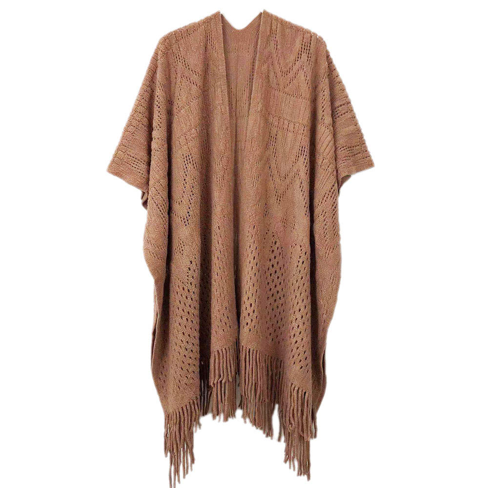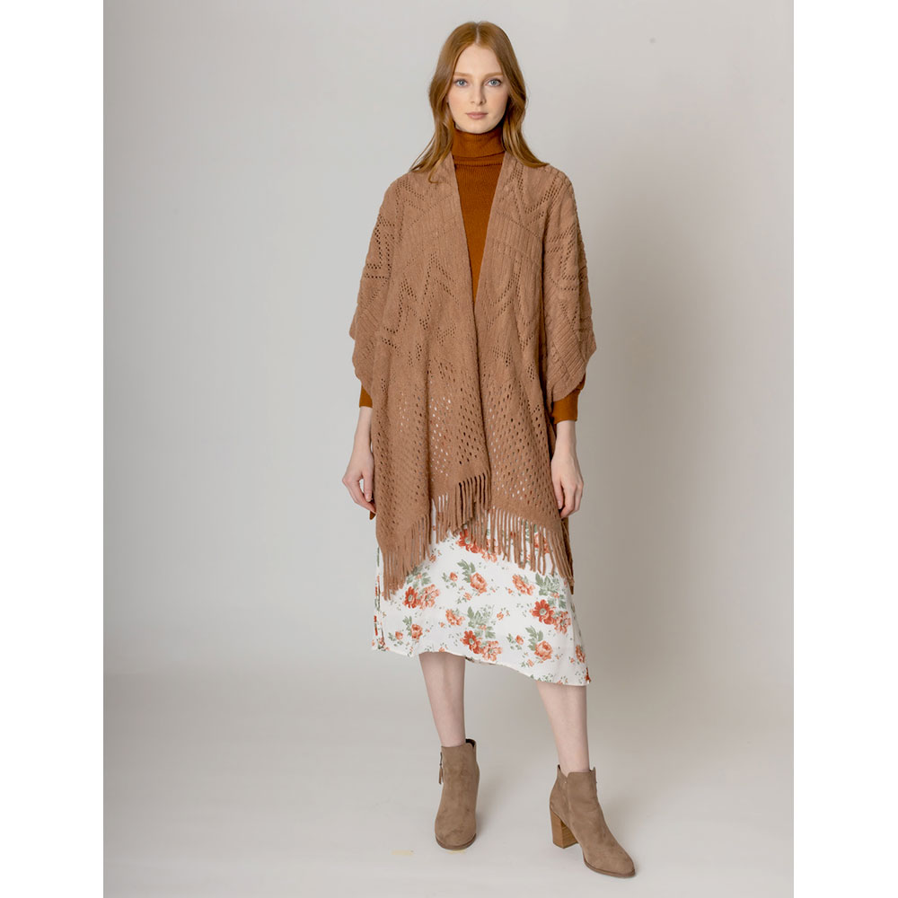 Ribbed Trim Open Front Soft Knit Shawl Cape Poncho