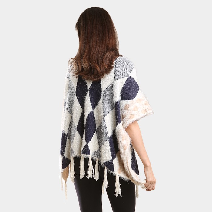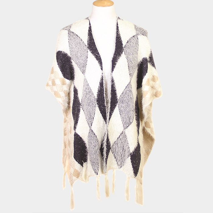 Open Front Elephant Pattern Print Shawl Wrap Poncho with Loop