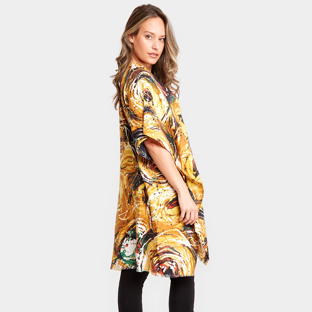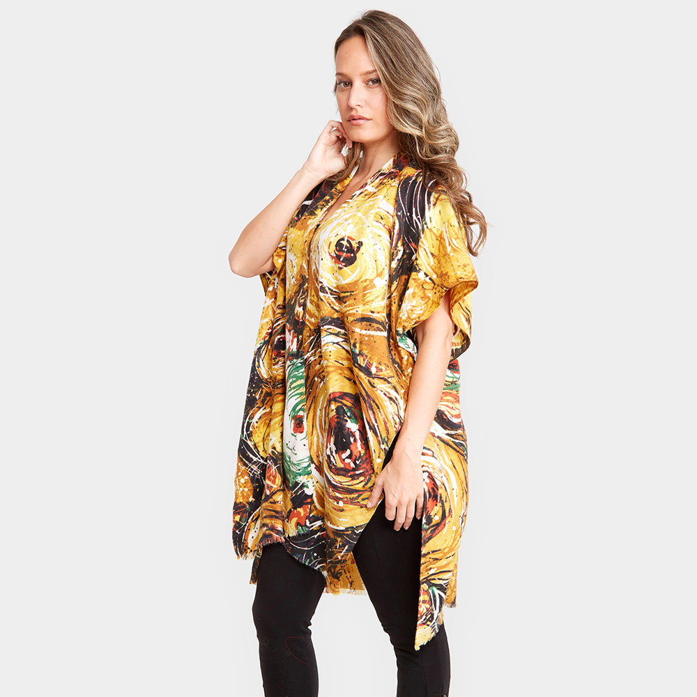 Open Front Abstract Animal Pattern Print Shawl Wrap Poncho with Loop