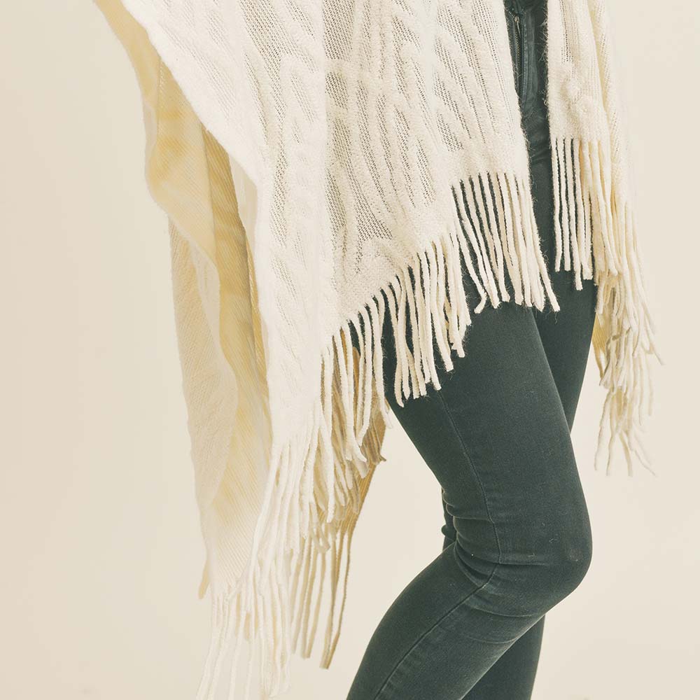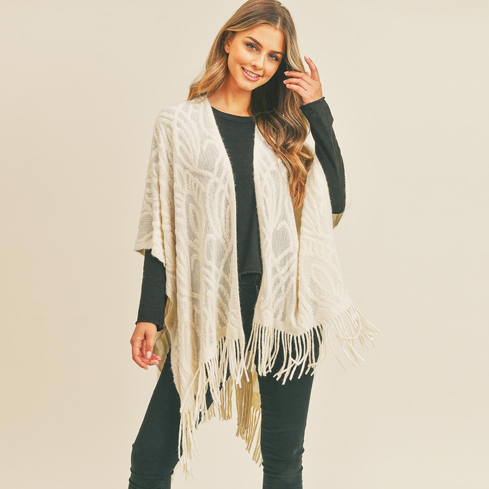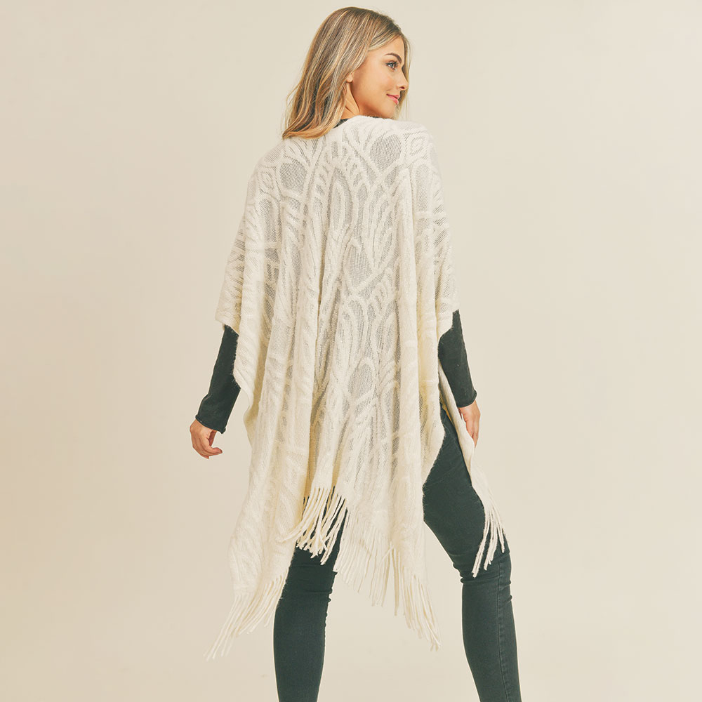Fuzzy Aztec Pattern Tassel Knit Ruana Poncho