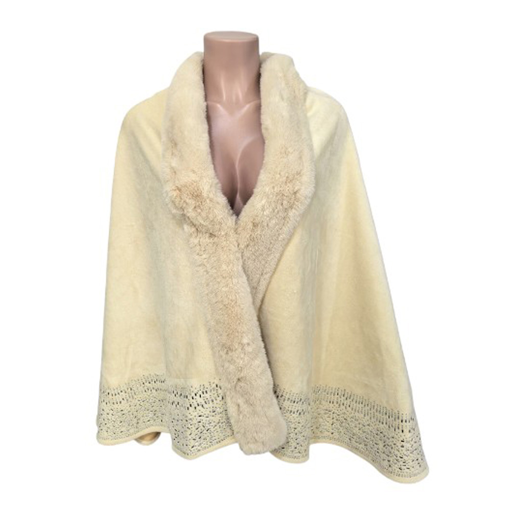 Faux Fur Trim Rhinestone Embellished Hem Poncho Shawl Faux Fur Trim Rhinestone Embellished Hem Poncho Shawl Faux Fur Trim Rhinestone Embellished Hem Poncho Shawl