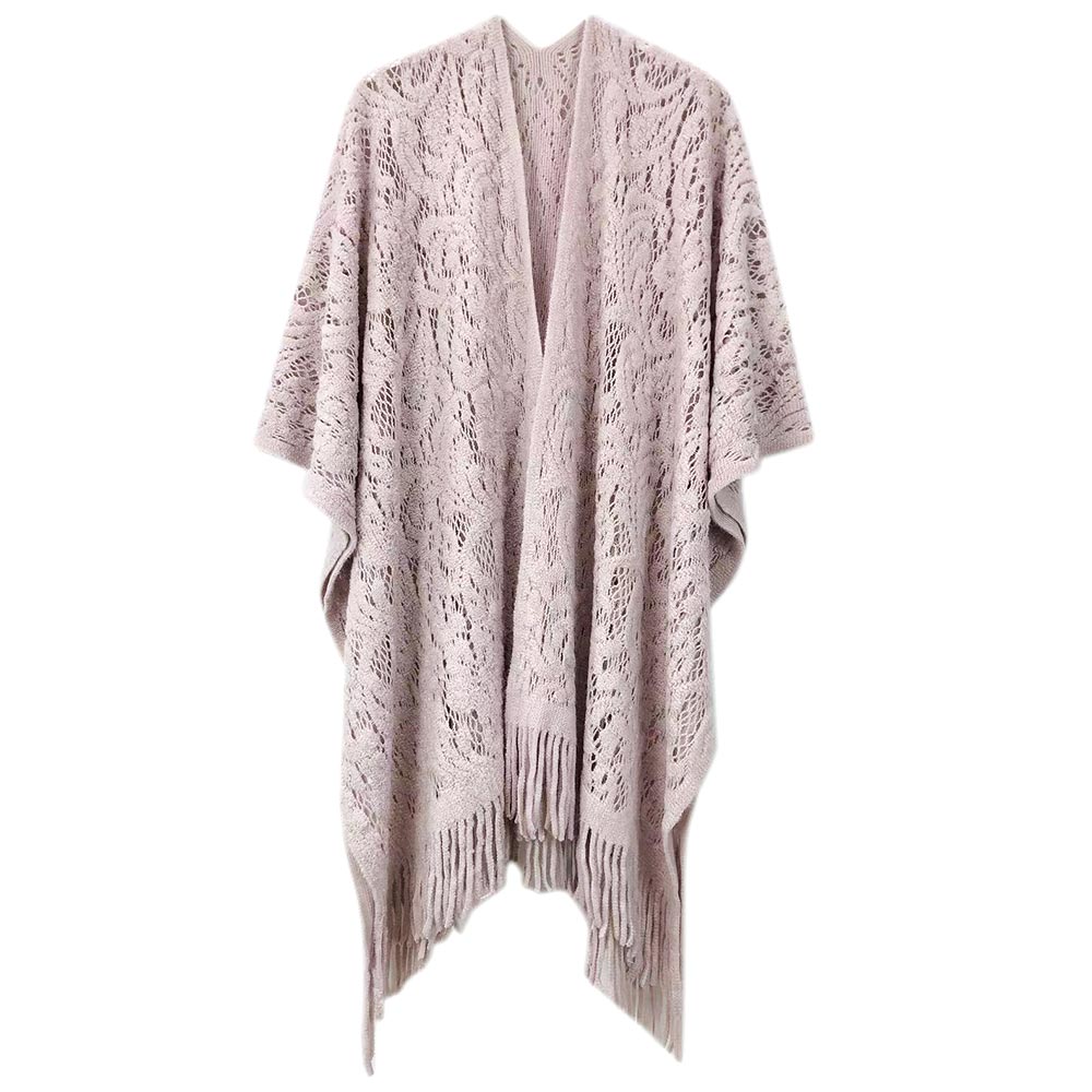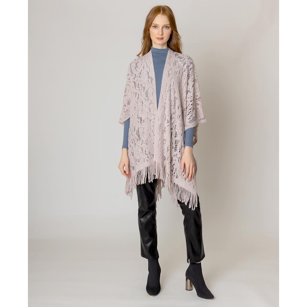 Floral Solid Crochet Ruana Poncho