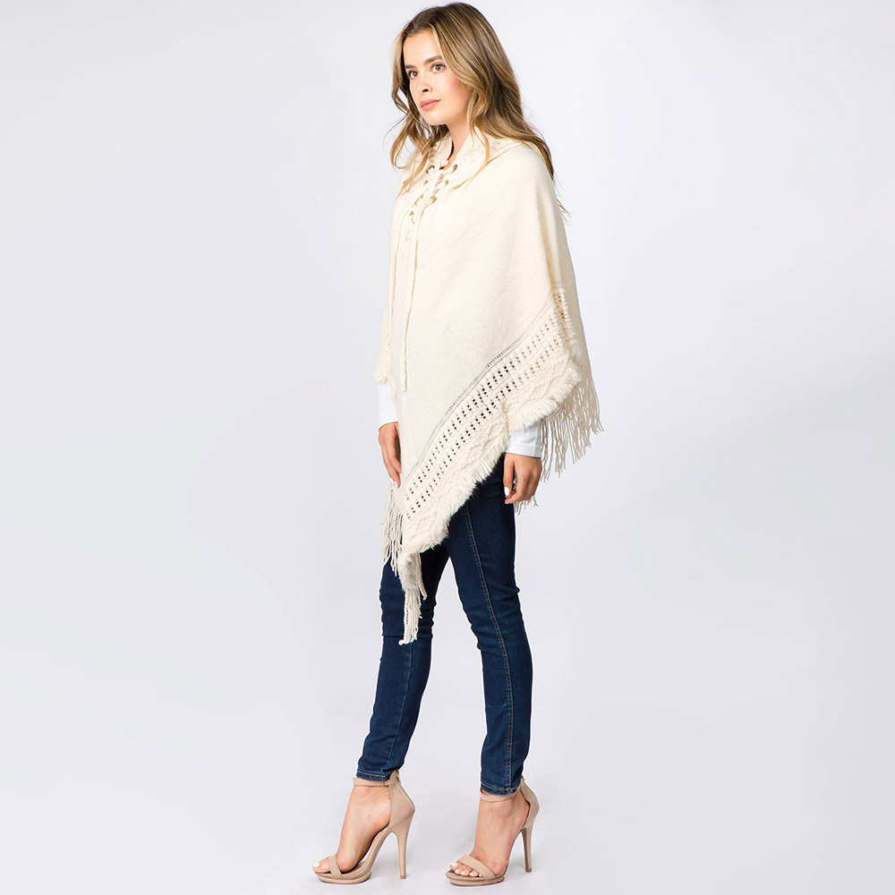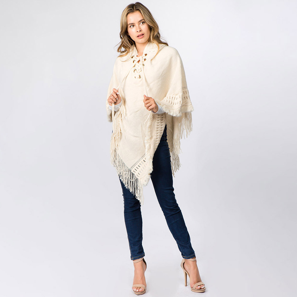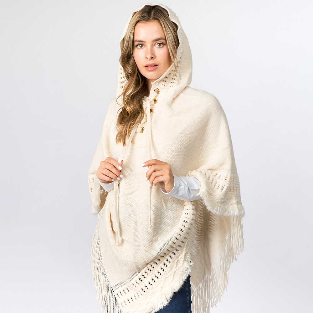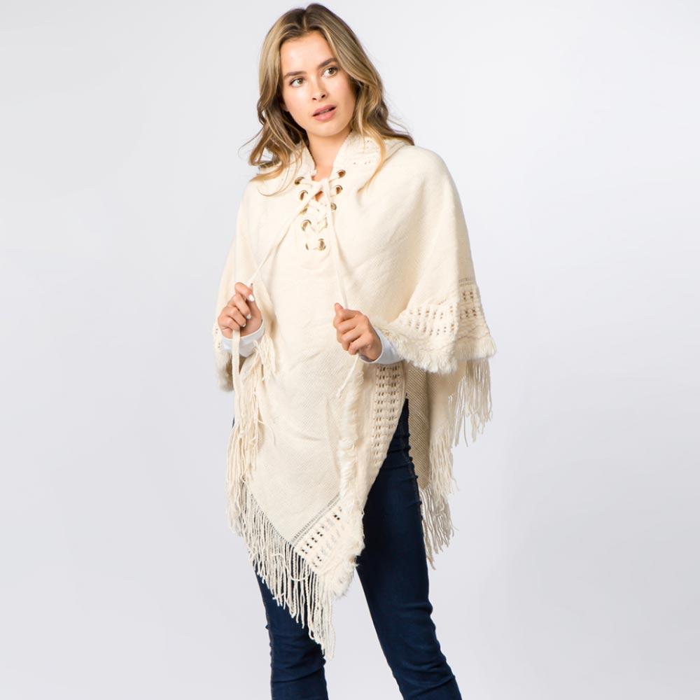 Fringe Hem Lace Up Hooded Knit Poncho Fringe Hem Lace Up Hooded Knit Poncho Fringe Hem Lace Up Hooded Knit Poncho Fringe Hem Lace Up Hooded Knit Poncho