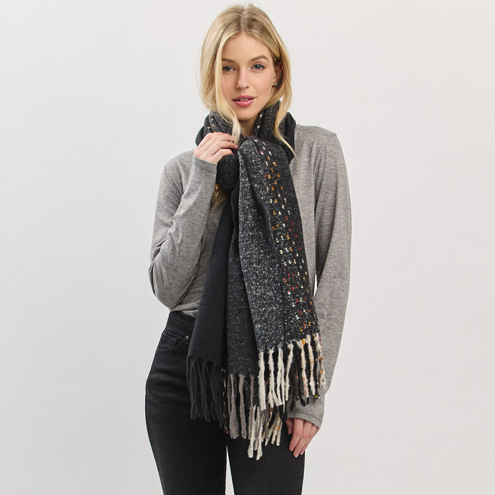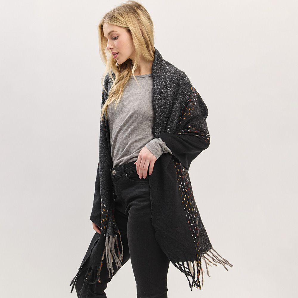 • A soft woven poncho wrap designed with a relaxed drape and finished with fringe hem details. Perfect for layering in cooler weather, this versatile style adds both warmth and effortless sophistication to everyday outfits.