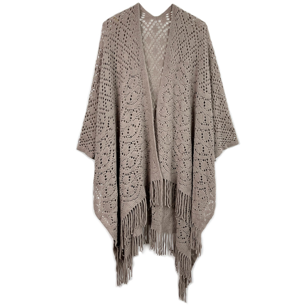 Fringe Open Knit Crochet Draped Shawl Wrap Ruana Poncho Fringe Open Knit Crochet Draped Shawl Wrap Ruana Poncho