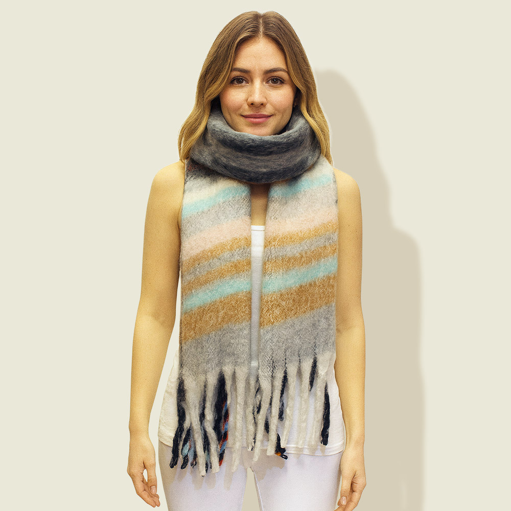 • Cozy striped winter scarf designed with a soft, oversized fit and finished with fringe ends for added style. Perfect for layering during cold weather, this warm accessory combines comfort and fashion, making it ideal for casual outings, outdoor adventures, or elevating your seasonal wardrobe.
