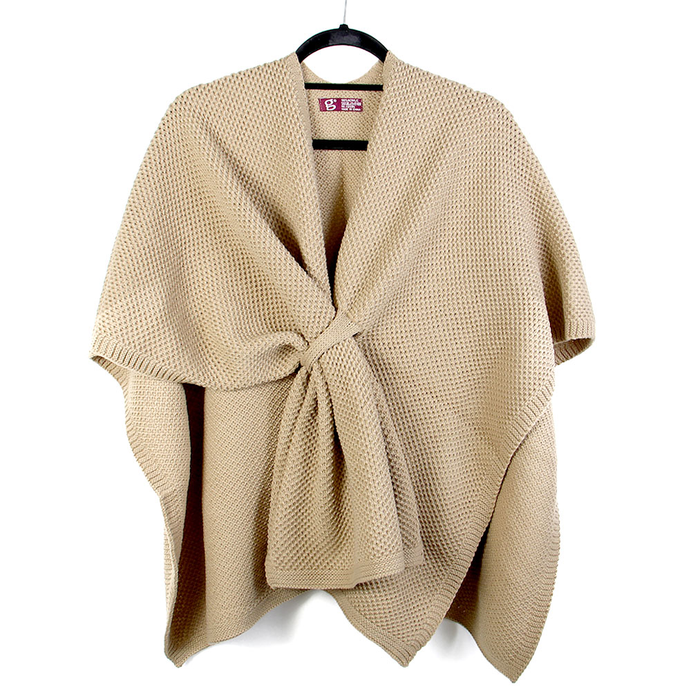 Front Tie Textured Knit Wrap Shawl Poncho Front Tie Textured Knit Wrap Shawl Poncho