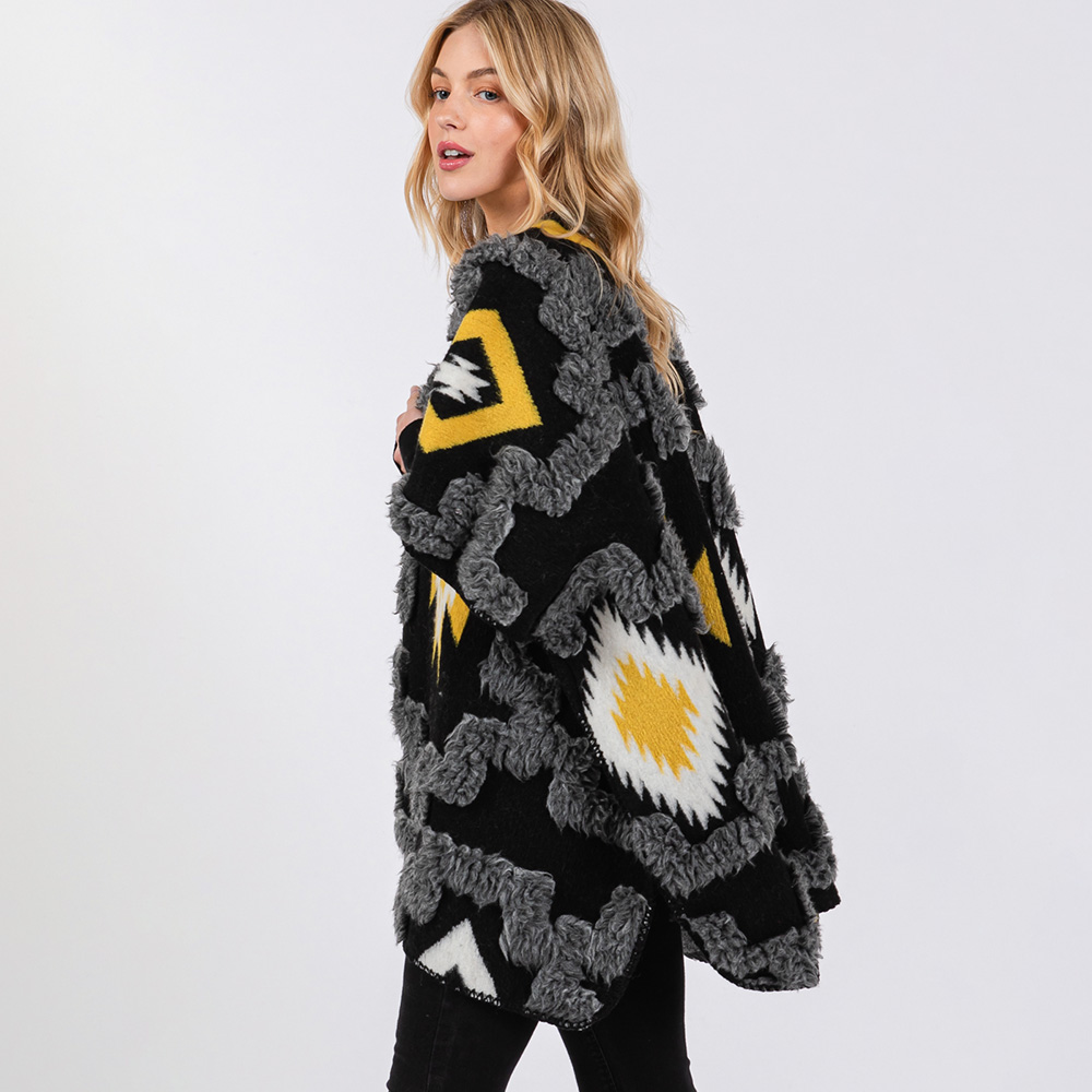 Open Metal Oval Link Leaf Patterned Fabric Bracelet