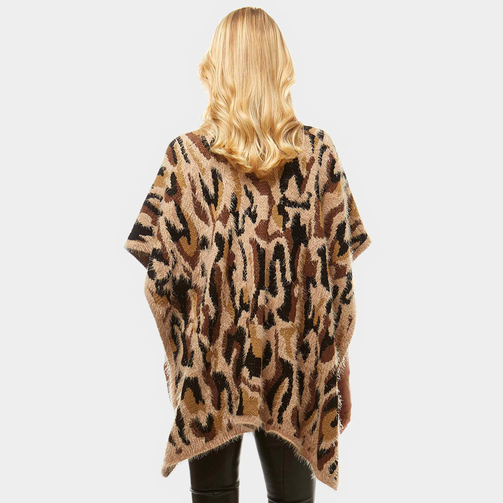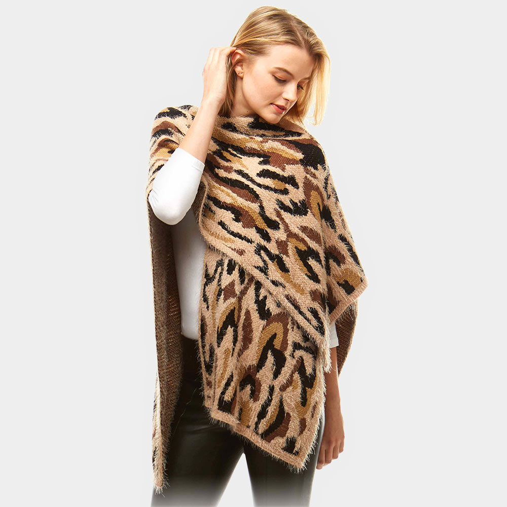 Leaf Patterned Velvet Burnout Shawl Poncho
