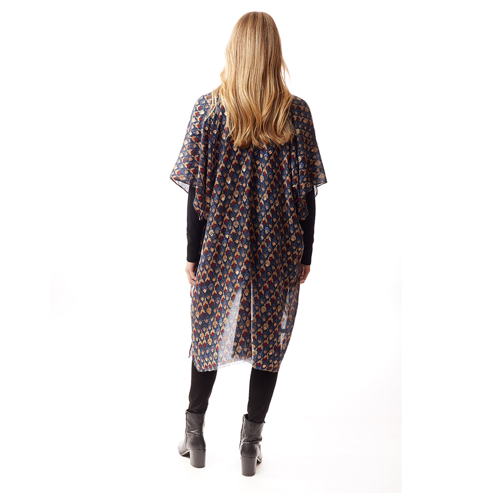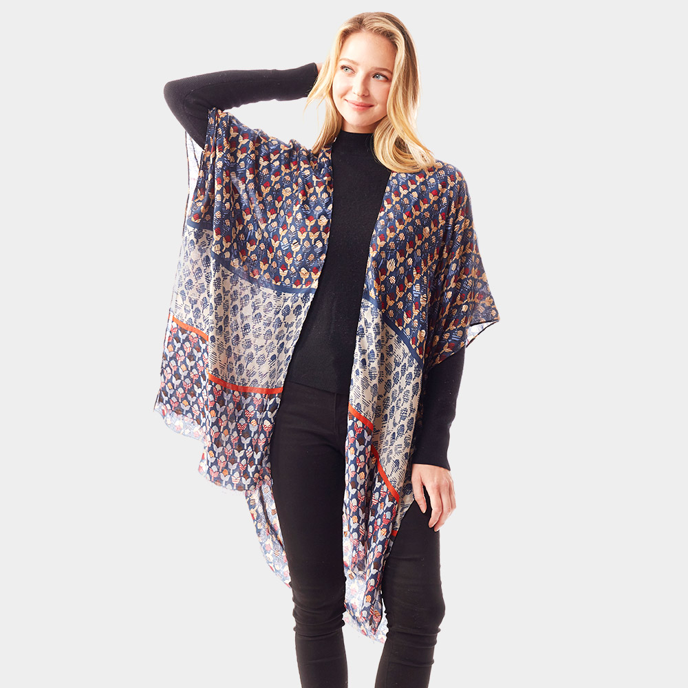 Geometric Border Printed Gold Foil Accented Ruana Poncho