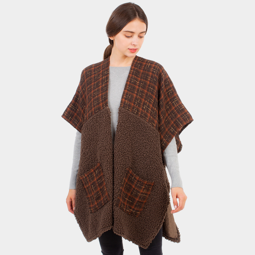 Details • Size : 29.5" X 35.4" • Material : 100% Polyester • Cozy open-front vest featuring a plaid upper panel and soft textured body. Designed with convenient front pockets and a relaxed fit, it's an ideal layering piece for casual comfort and seasonal warmth.