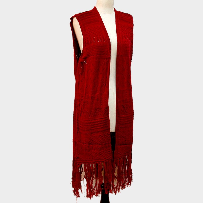 Thread Wrapped Square Hoop Drop Chain Tassel Necklace