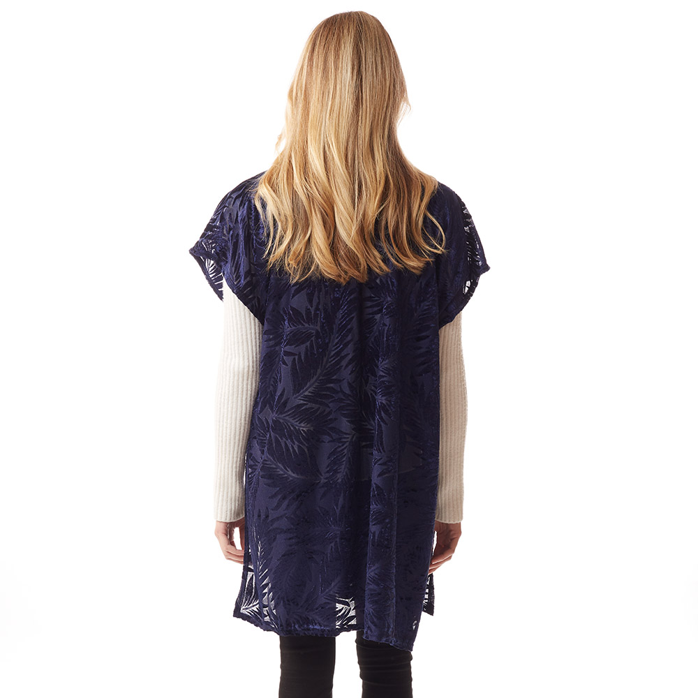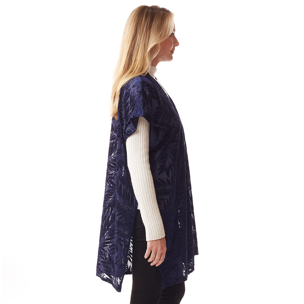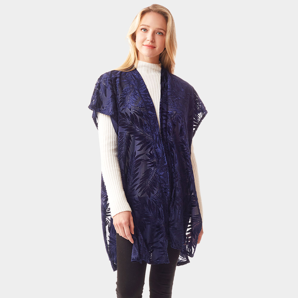 Leaf Patterned Velvet Burnout Shawl Poncho