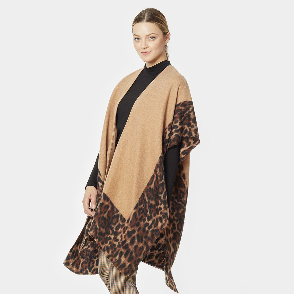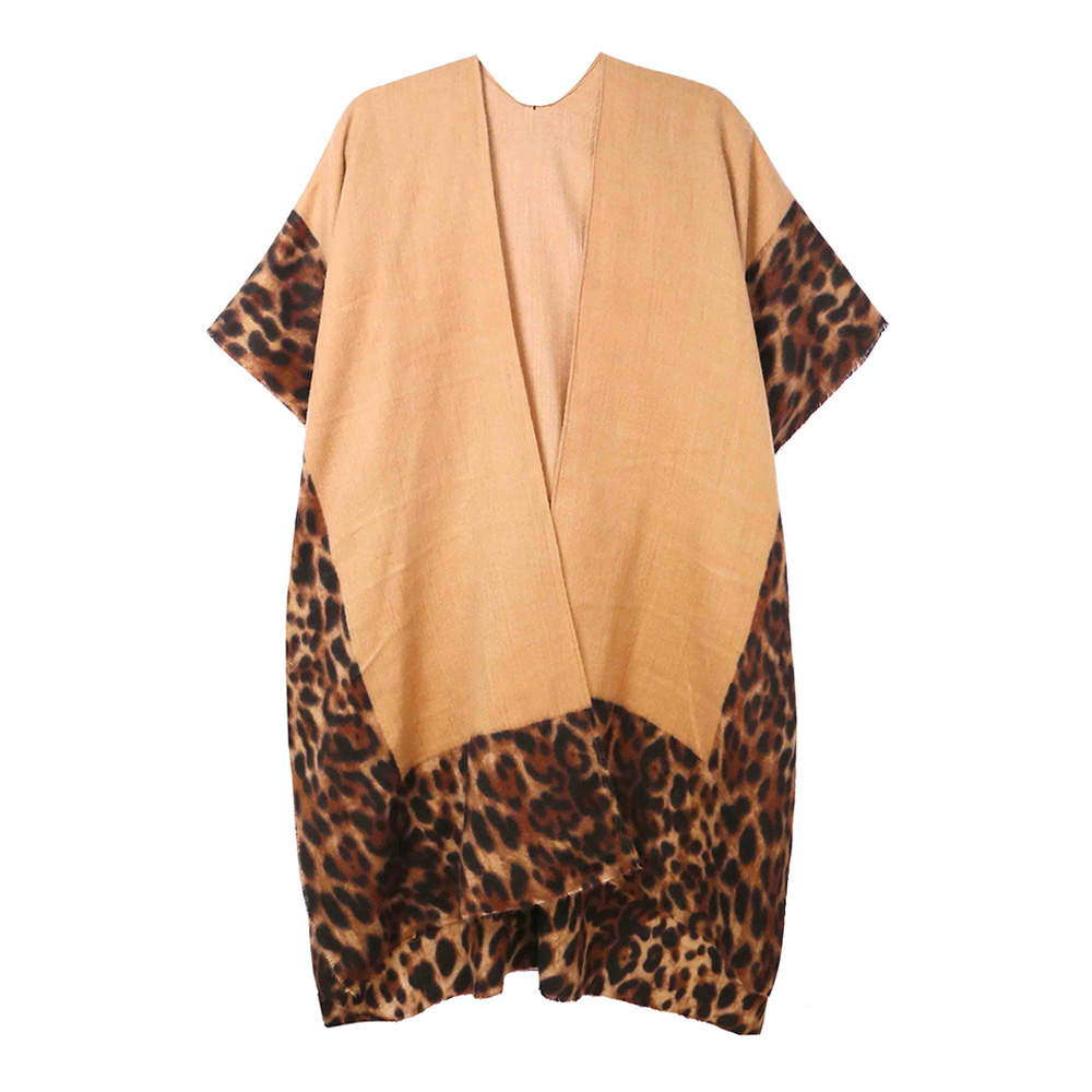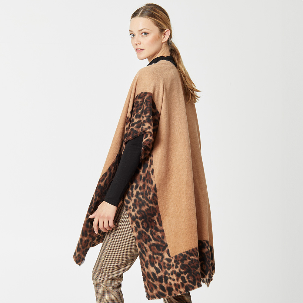 Open Front Baroque Floral Border Print Shawl Wrap Poncho with Loop
