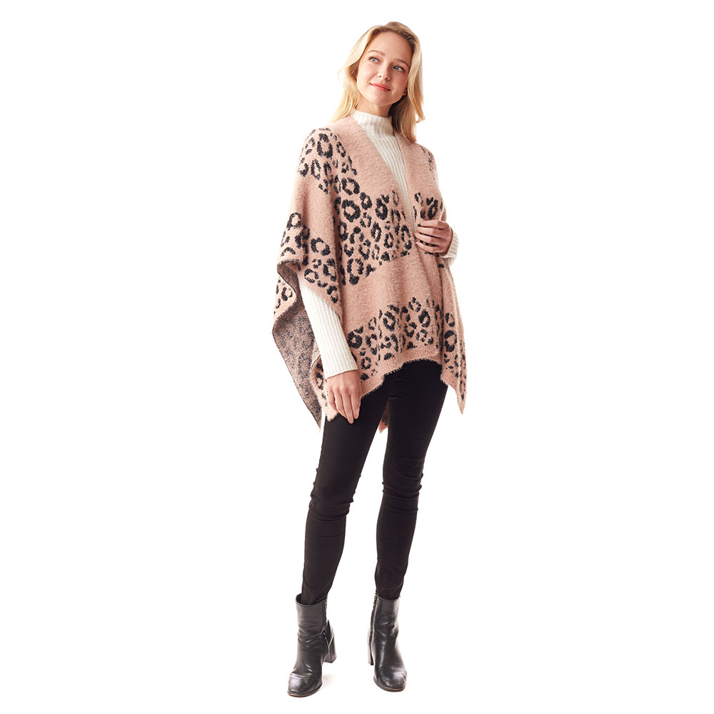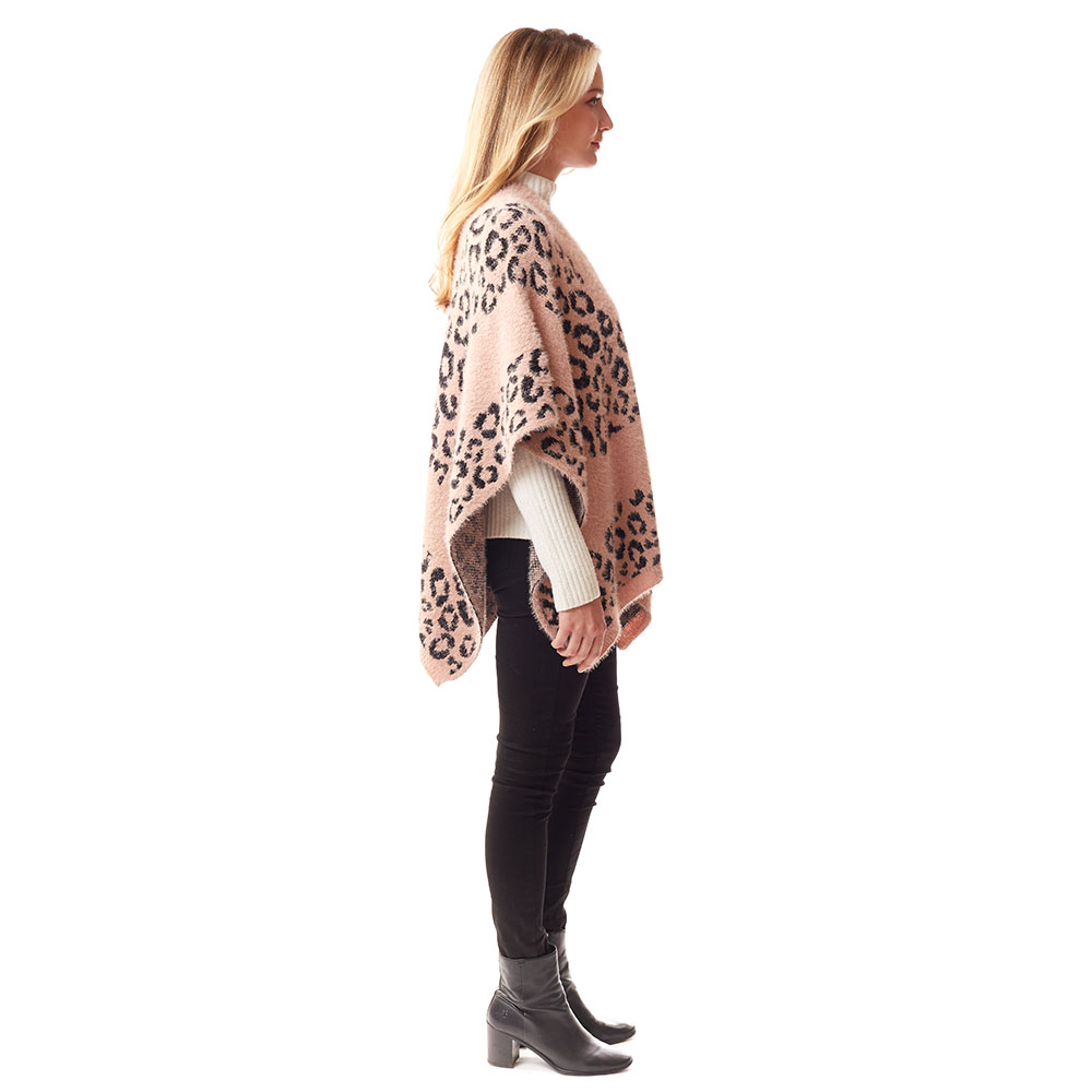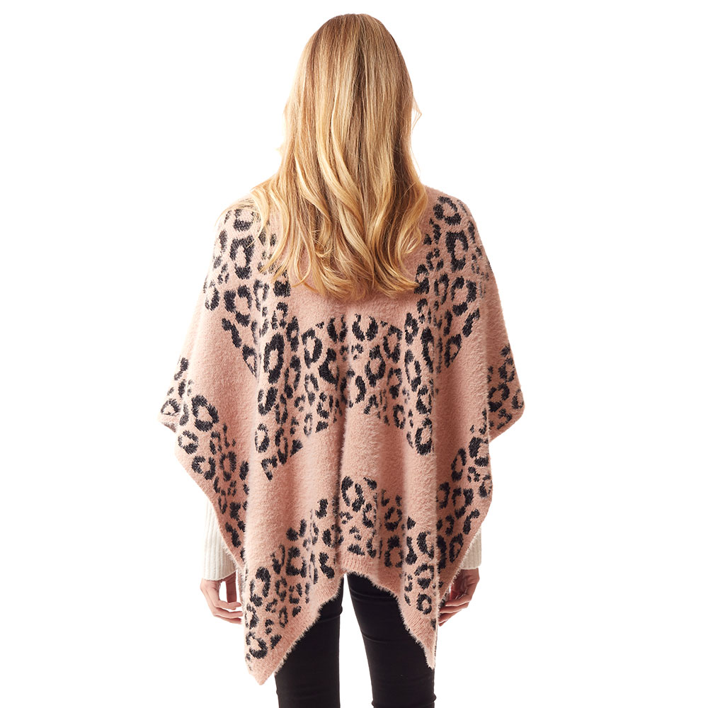 Leopard Patterned Soft Fuzzy Ruana Poncho