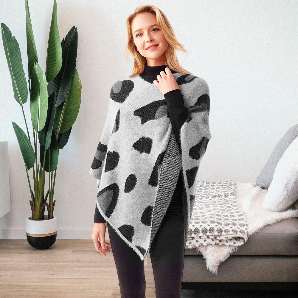• Make a statement with this cozy poncho featuring a bold leopard pattern and relaxed fit. Perfect for layering, it adds instant style and warmth to any casual or dressy outfit with modern flair.