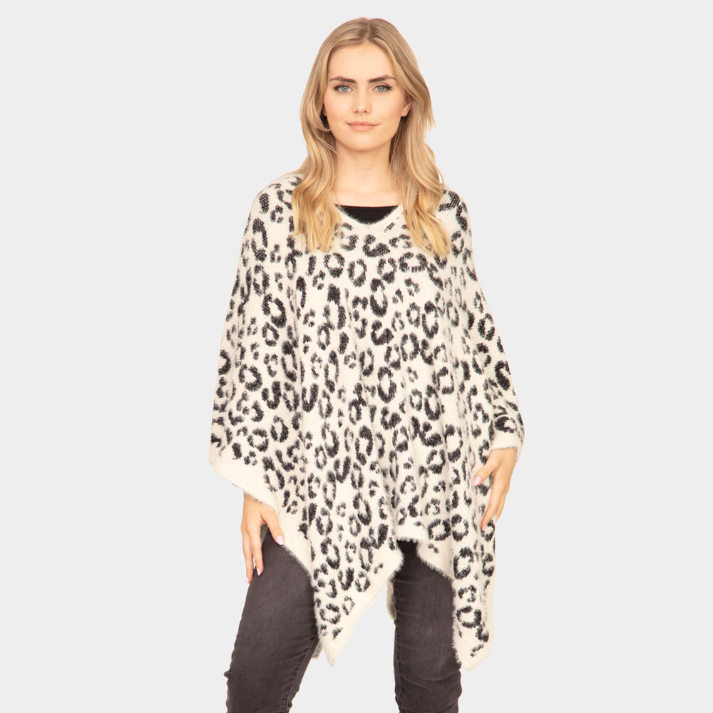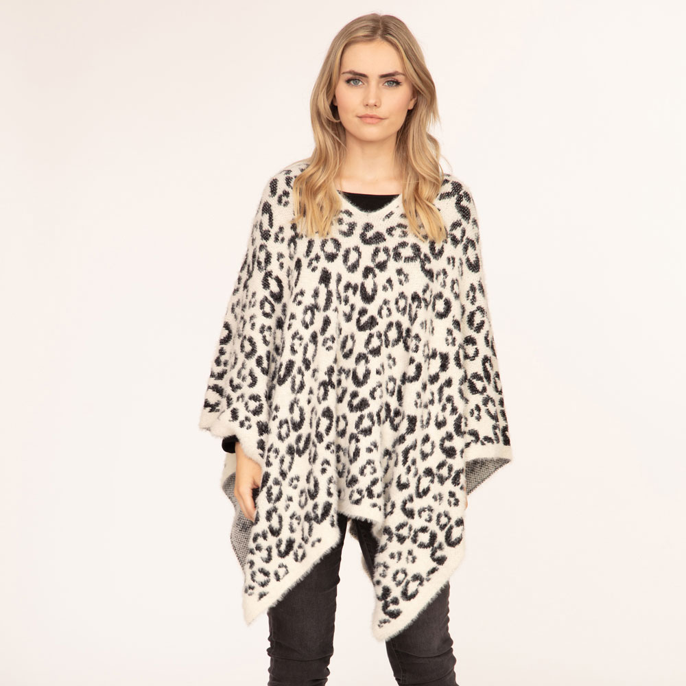 • Stylish leopard print knit poncho with soft, flowing silhouette and cozy feel. Features a relaxed fit that layers easily over any outfit. Ideal for adding warmth and fashion-forward flair to your look.
