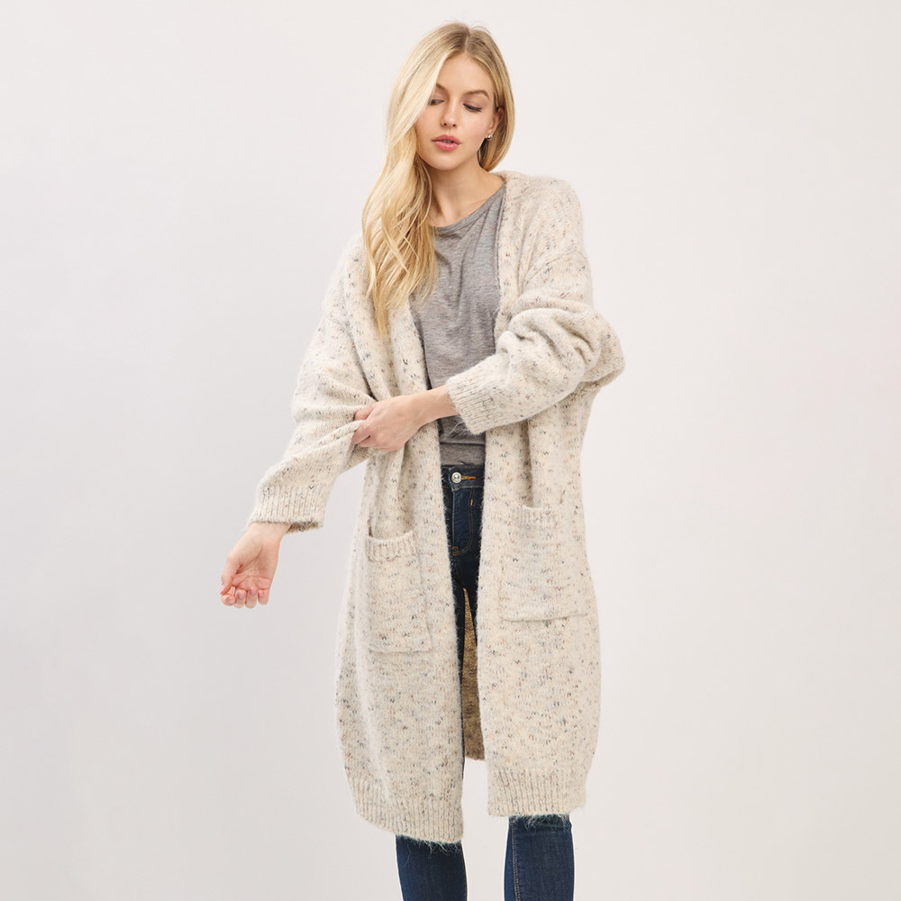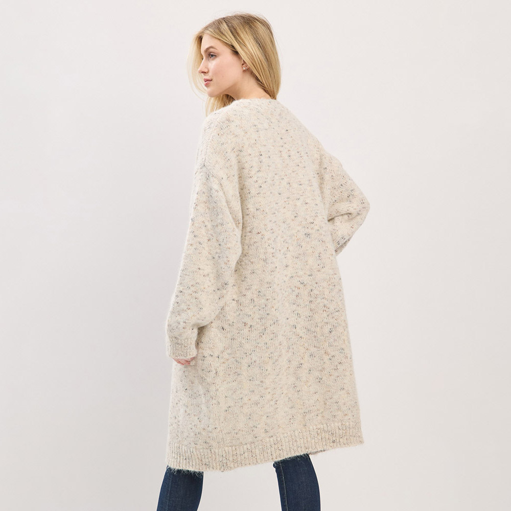 • Stay cozy in this long knit cardigan featuring a button-front design, roomy front pockets, and a relaxed fit. Perfect for layering over casual outfits during chilly days or lounging in effortless comfort.