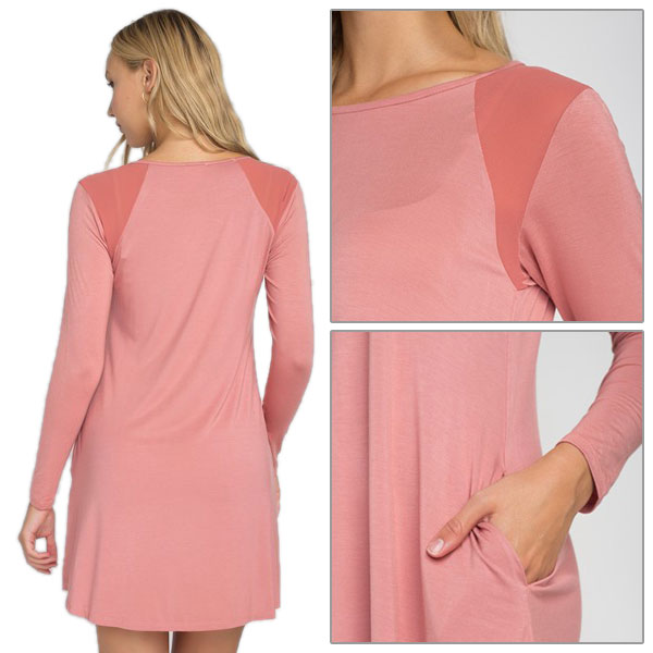 Mesh Shoulder Long Sleeve Dress w/ Pockets