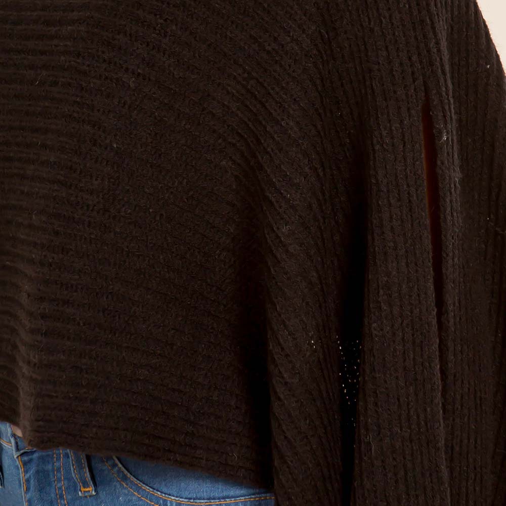 Details • Size : One Size • Material : 100% Acrylic • Elevate your outerwear with this ribbed knit poncho featuring a cozy mock neck and flowing asymmetrical hem. Designed for effortless layering and chic coverage, it delivers comfort and sophistication in one stylish silhouette for seasonal dressing.