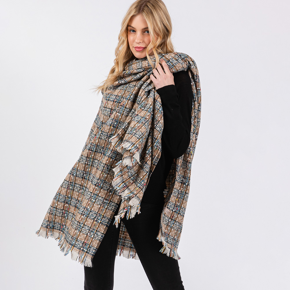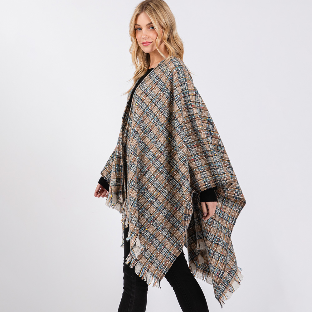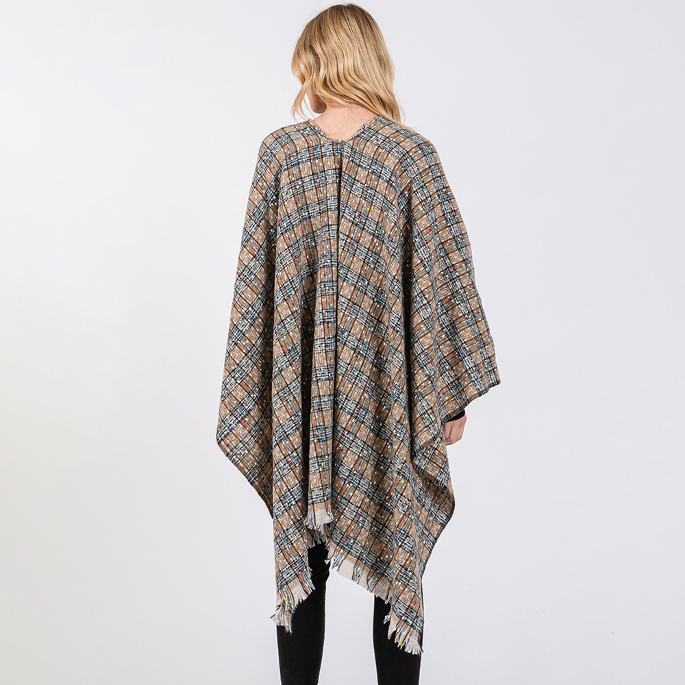 Multi Color Plaid Pattern Ruana Poncho